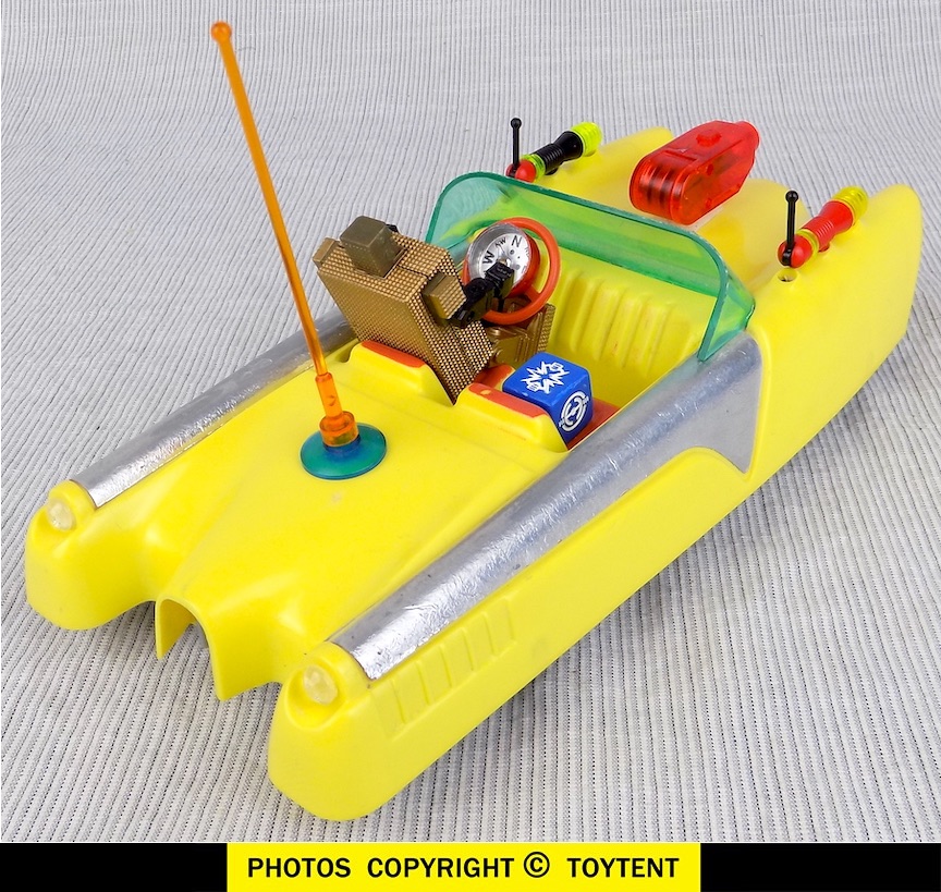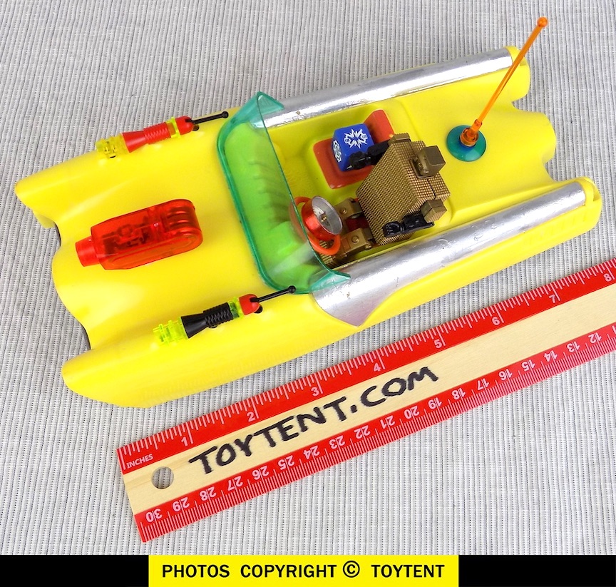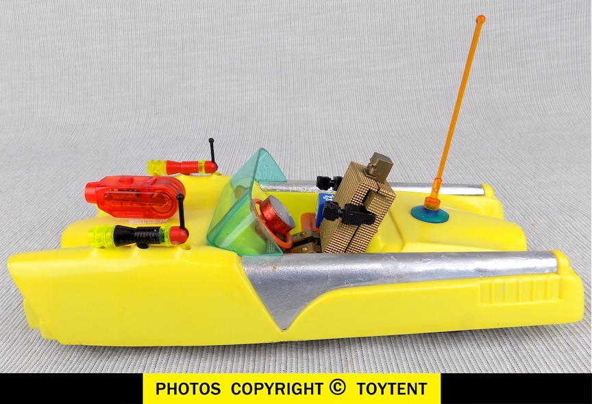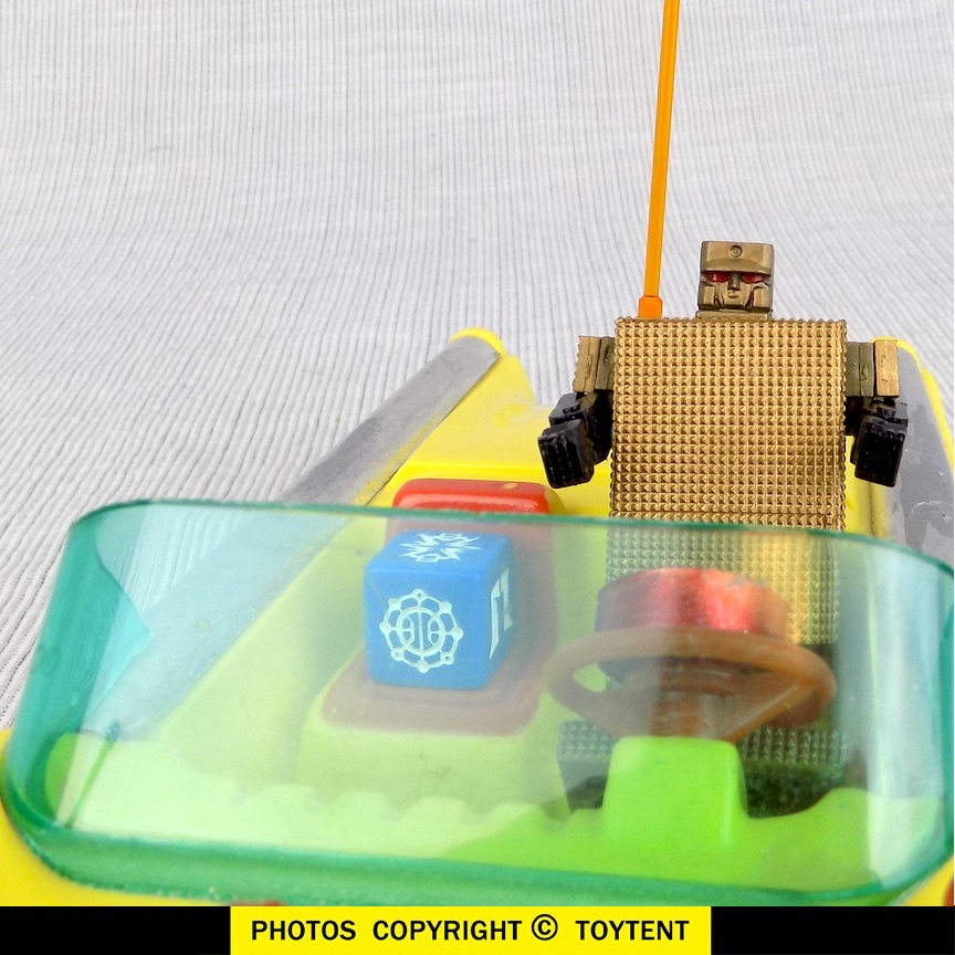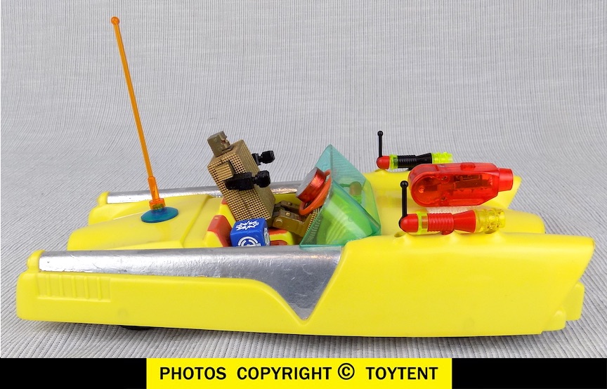 - Car has radar antenna and blue cube radar receiver, radar controlled ray guns, lighted hood-mounted cannon and working friction motor