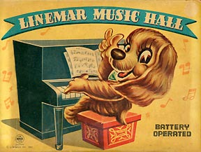 - Professional quality reproduction box for the battery operated musical dog playing the piano made by LineMar