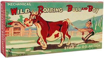 - Professional quality reproduction box for the funny tin wind-up boy with a bull by the tail made in Japan by Mikuni