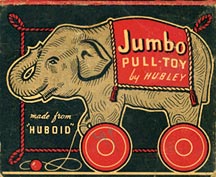 - Professional quality reproduction box for Jumbo the Elephant pull-toy made of 'Huboid',