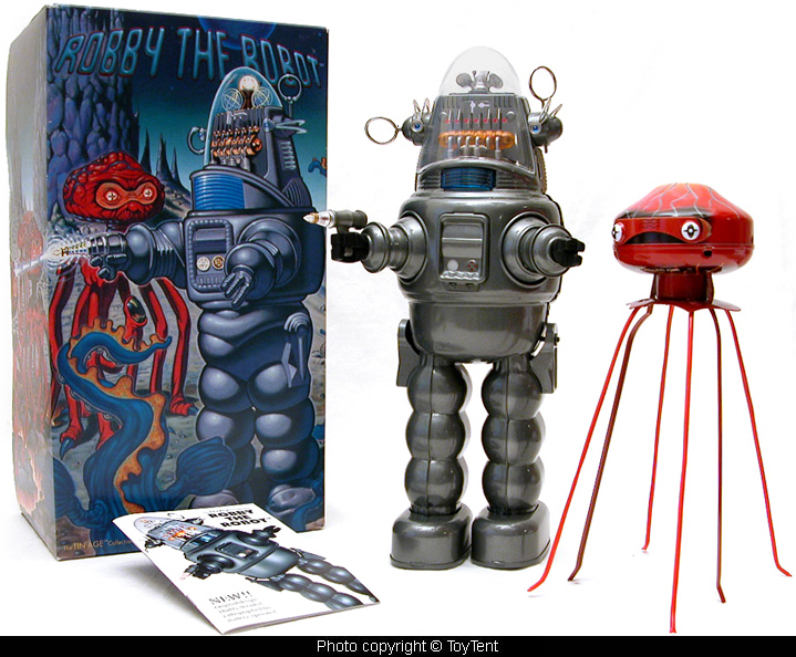 Battery operated Robby the Robot from Forbidden Planet with light-up ray gun