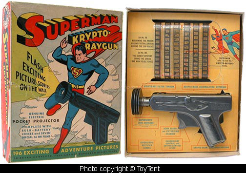 Superman Krypto Ray Gun projector pistol with 6 film reels