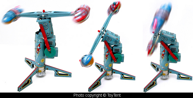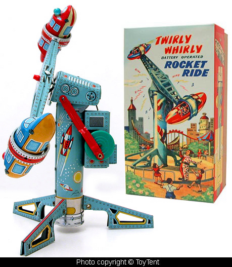 All tin construction, the rocket ride is over 13" tall