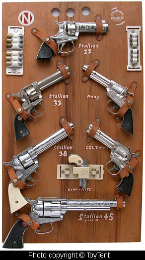 Display board measures 14" x 24" carries the following toy cap pistols: