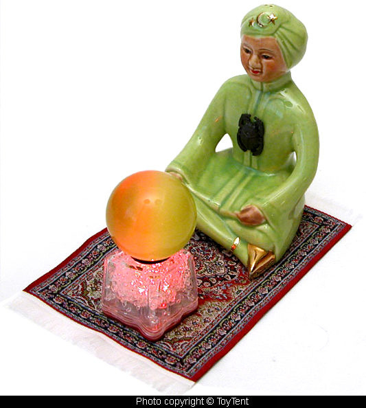 - Fortune telling game with genie on magic carpet, color changing lamp with crystal ball and 24 fortune cards