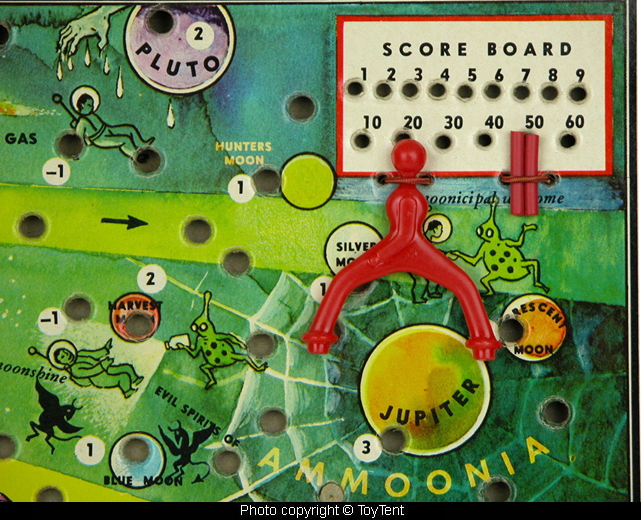 Each player moves through the space maze at will, scoring points while traveling a fantastic adventure filled galaxy