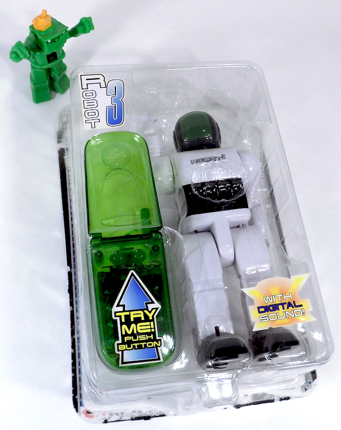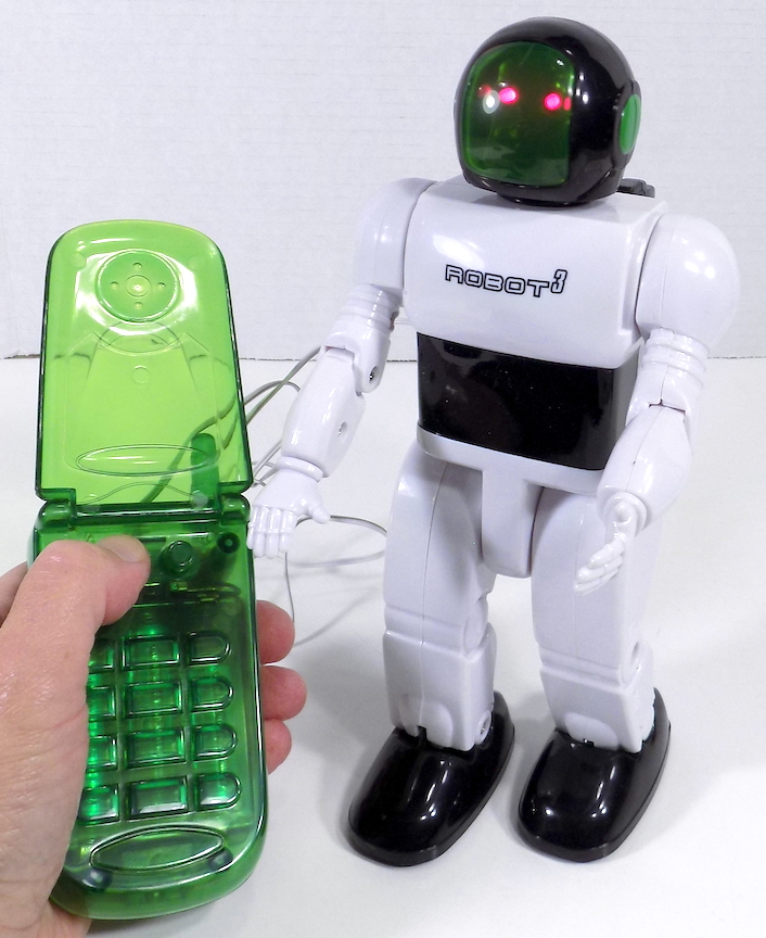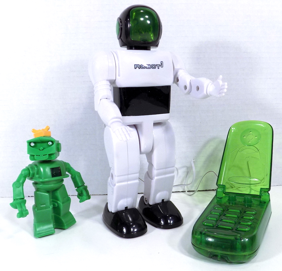 - Battery operated Robot 3 android-style robot with flip-phone remote control Plus! Burger King 2003 Lug robot toy