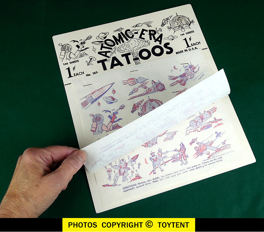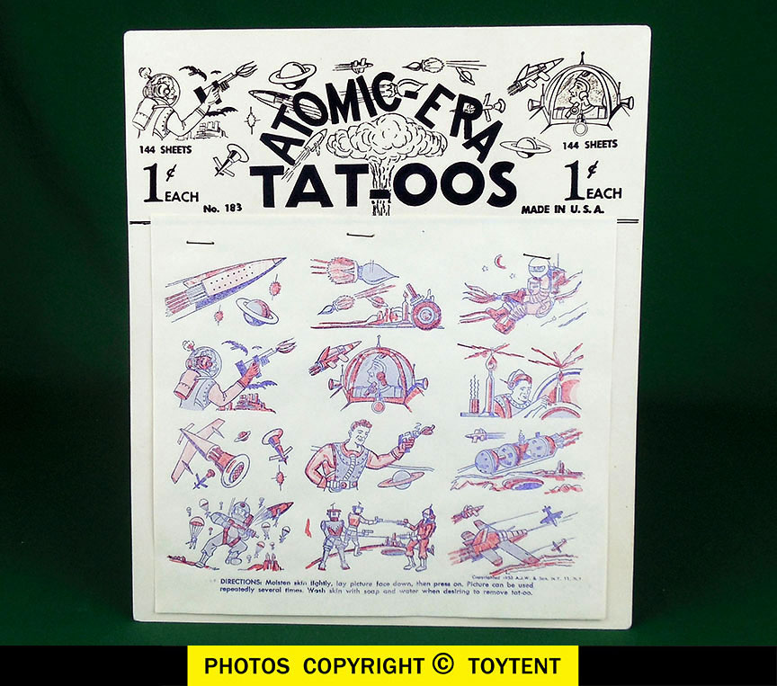 Two original 1953 tattoo sheets on our replica Atomic Age card
