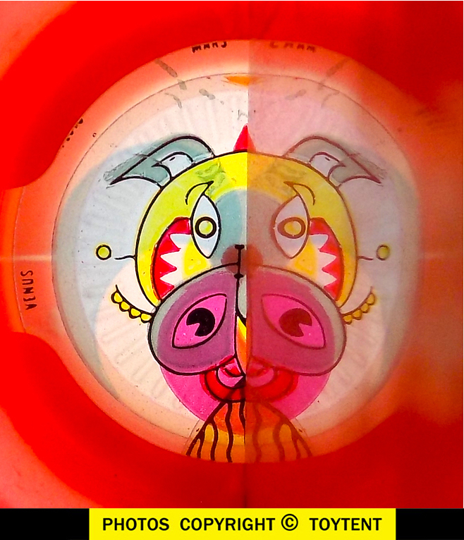 Look in the eye piece and turn the nose cone to alien faces from outer space