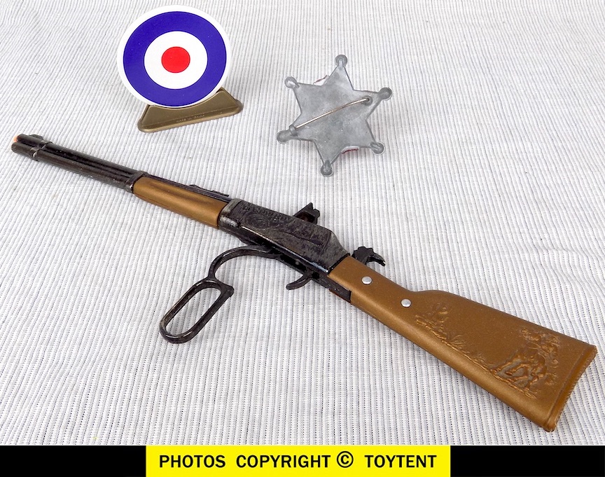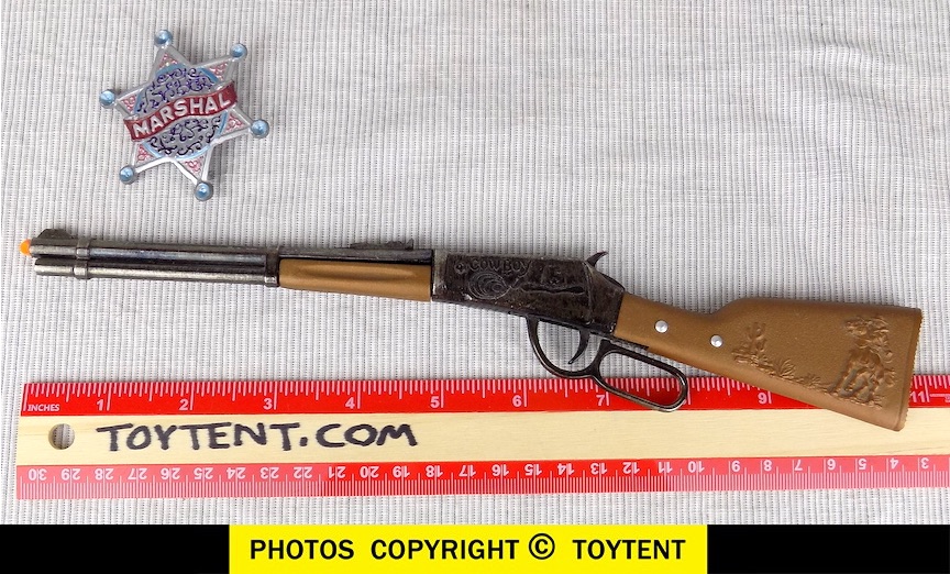 - Cap firing lever action 11-inch rifle with pointed star Marshall badge and miniature target