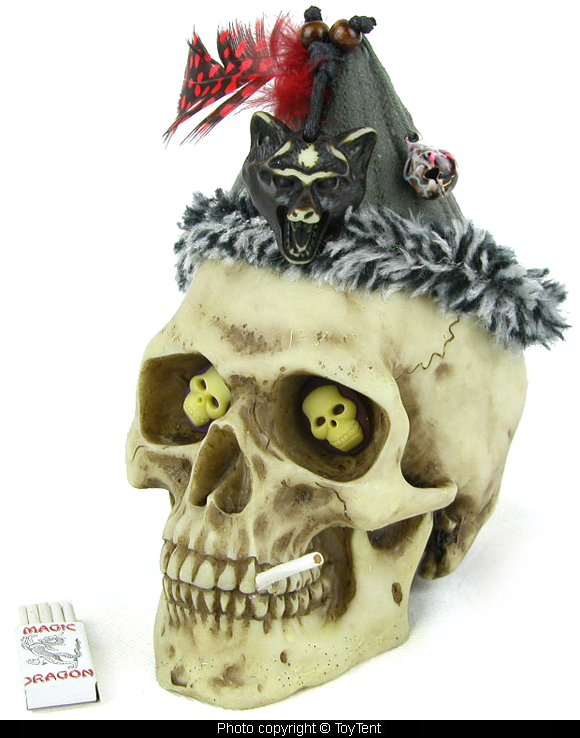 Smoking skull with Magic Dragon novelty cigarettes