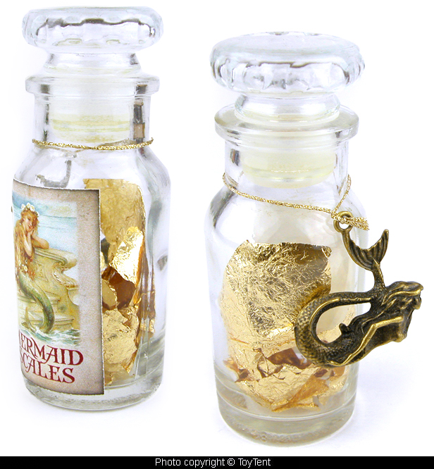 - Apothecary jar of gold mermaid scales with mermaid charm