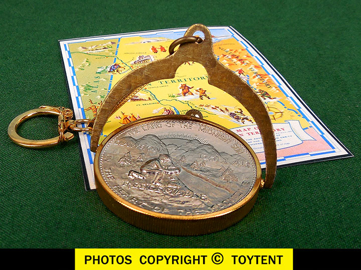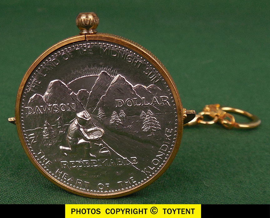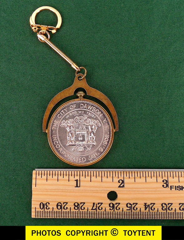 Geniune Dawson Dollar set in a brass keychain spinner