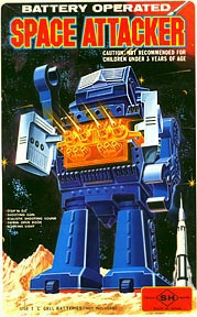 Professional quality reproduction box for the battery operated Space Attacker Robot made in Japan by Horikawa (trademark S.H.)