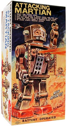 - Professional quality reproduction box for the battery operated Attacking Martian Robot with astronaut face made in Japan by Horikawa (trademark S.H.)